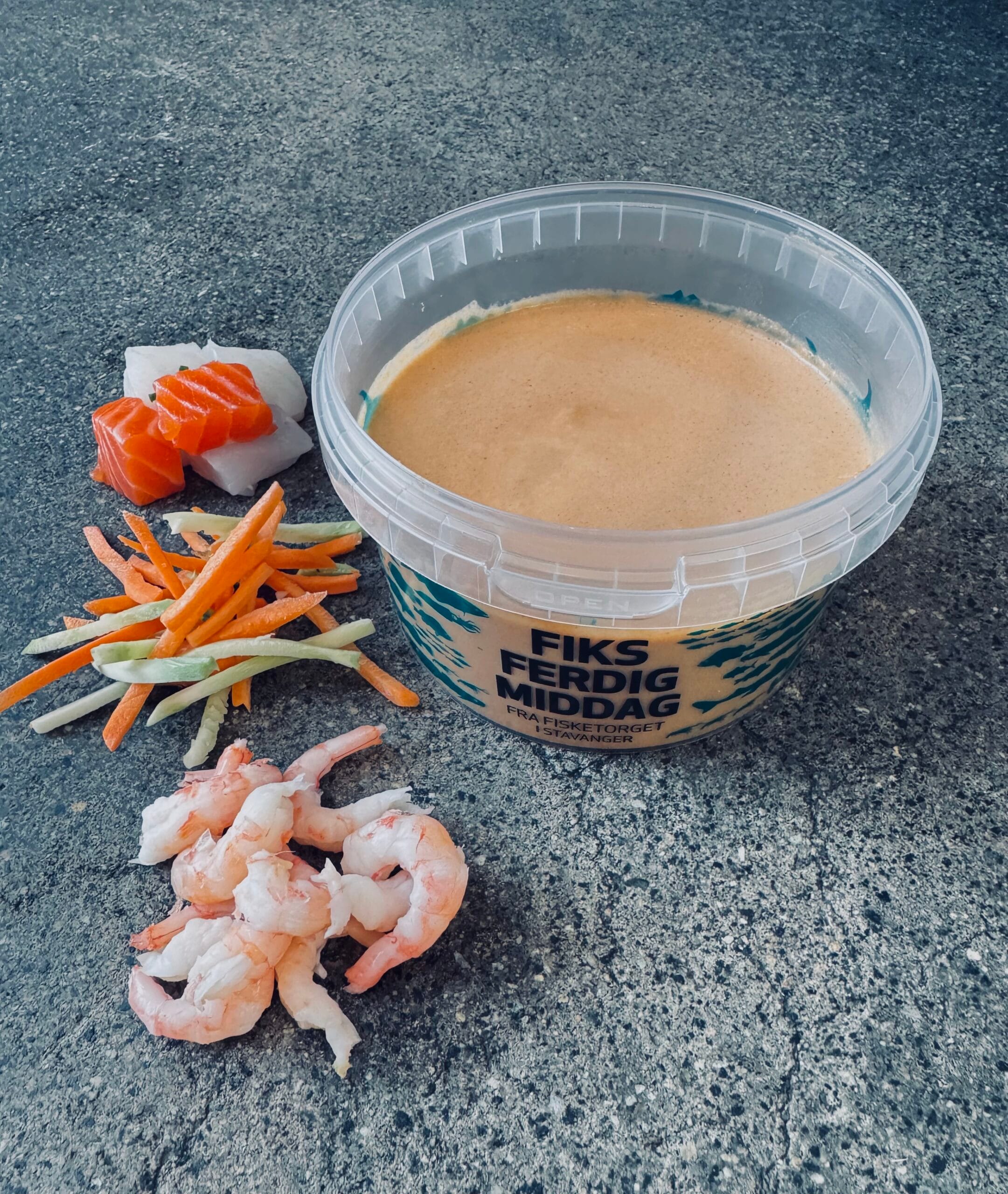 Inneholder: skalldyr, fisk, melk, fløte, smør, hvete, ingefær, appelsiner, chili, sitrongress